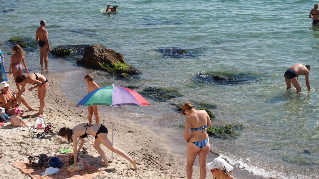 Лузановка сегодня теплей чем вчера. Но водорослей много мелких. Как в борще купаешься.