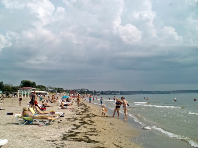 На 16 станции корнеротов не было замечено, вода теплая, но болотно-зеленый цвет настораживает... Скорее всего после дождя вся городская грязь с ливневок постекала в море... Небольшие волны имеют место быть... В общем купаться не полез, только ноги помочил. Фоток мало, аккумулятор сел не вовремя