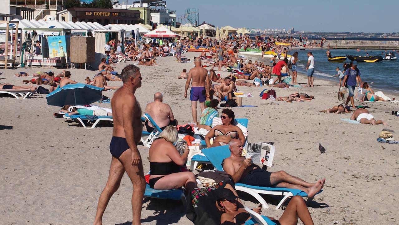 Ланжерон. Людей немного, водичка прозрачная и довольно жарко)