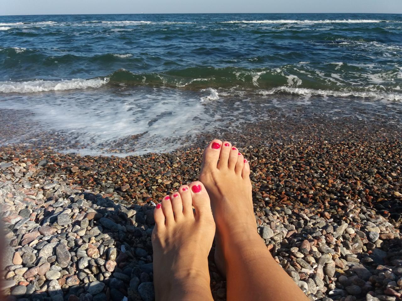 Море шикарно! Не знаю сколько градусов. Я с удовольствием окунулась. Это то странное чувство, когда идешь на море в пальто, раздеваешься, купаешься, одеваешь пальто, и уходишь домой. Уходишь со странным чувством. Только что ж купалась и загорала![]()