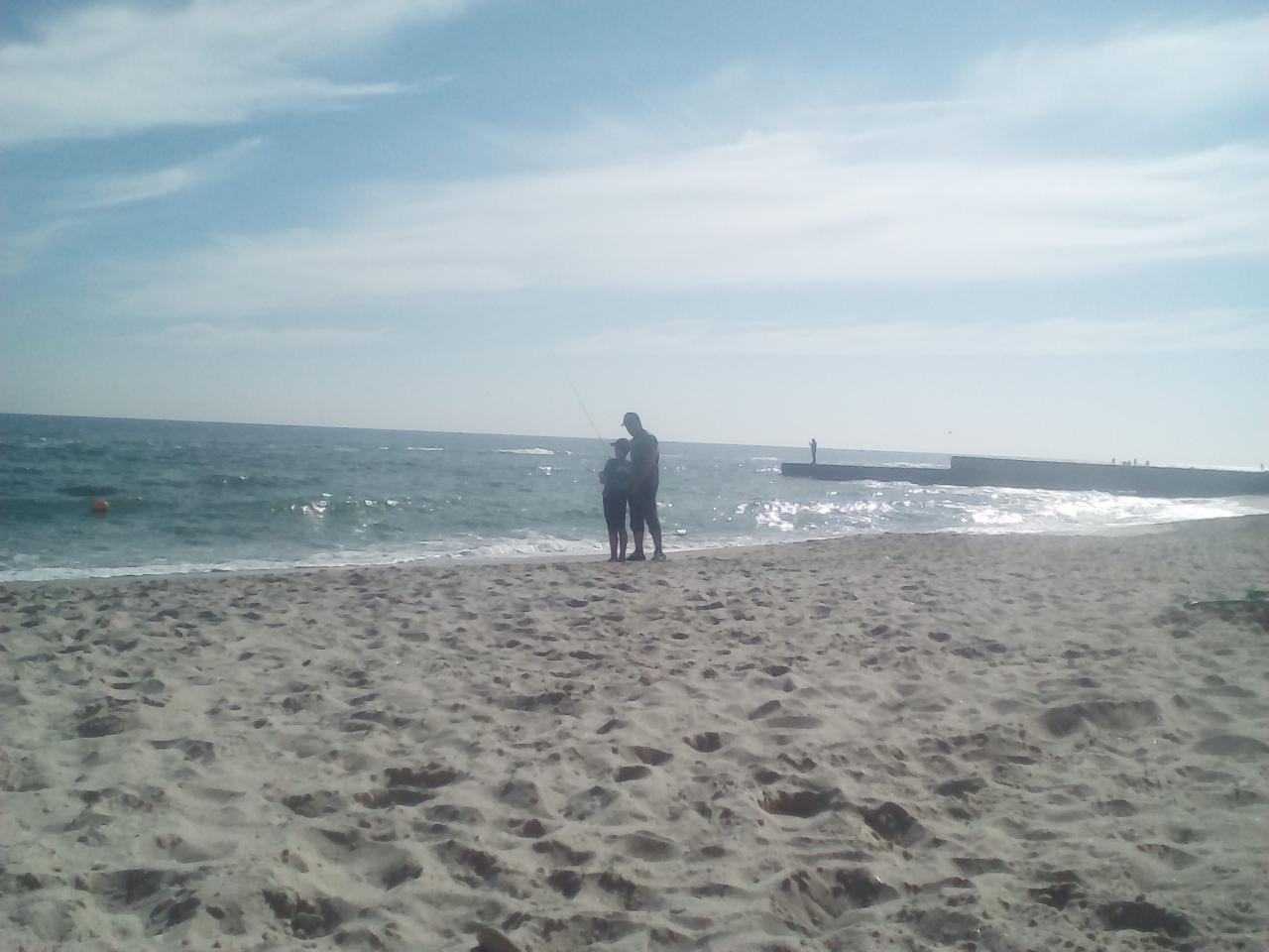 Такое впечатление, что все были на разных морях) На Шпоре было малолюдно, в основном стояли на пирсе рыбаки... море мне показалось градусов семнадцать-восемнадцать... а муж кутался в пледик)