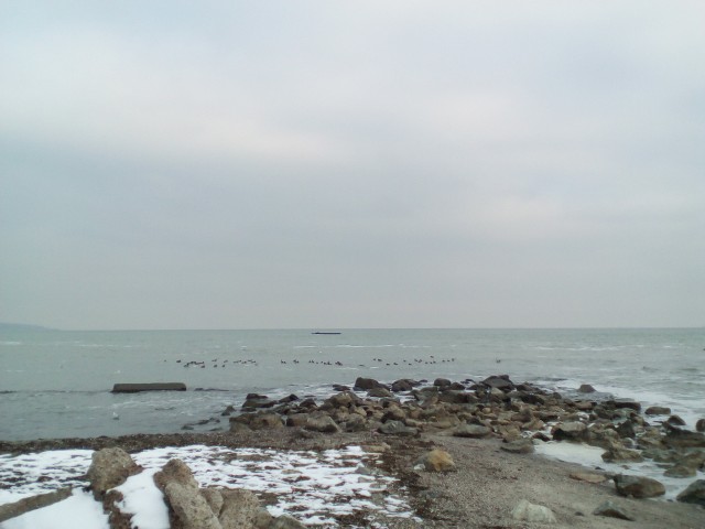 На море ближе к вечеру было тепло.Трасса Здоровья под снежным покровом почти везде,хотя и видел тройку бойцов с заносами с лопатами в районе скалодрома.Три морских котика около Санторини пытались обвить ноги и повалить на снег,чтобы без корма для них там больше не ходил...Попался всего 1 велосипедист и 1 электропедист.Пеших мало,а зря.Погодка нашептывала что то очень приятное...