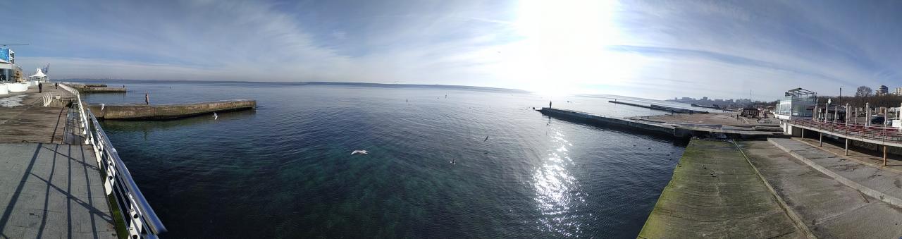 Небольшие волны, стада голодных чаек и других приморских птиц. Вода бодрящая, в районе +3°С, теплее воздуха. Камни и песок подмерзли, к 10.00 начали оттаивать.