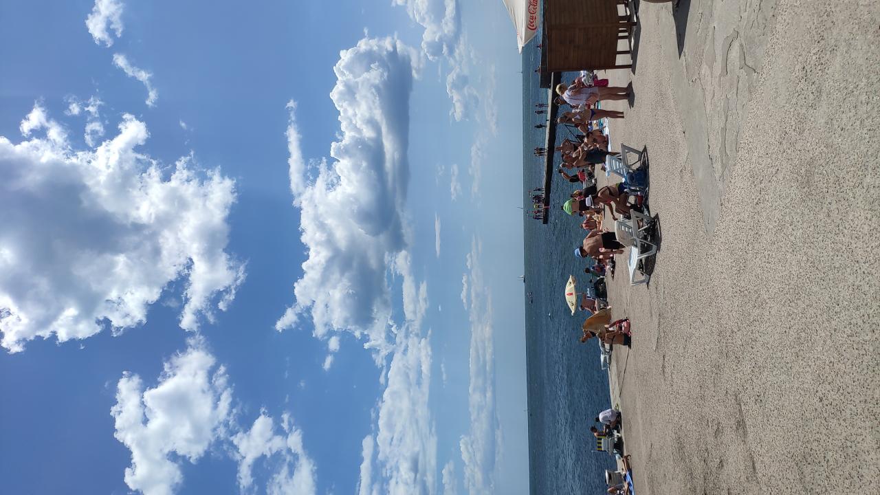 Водичка теплая, больше 20-22 градусов. И в 8 была относительно чистая. На берегу ветерок, некомфортно выходить.
