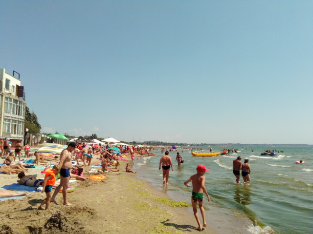 Итак, мои впечатления: народу больше, чем людейУ берега вода не выше 18 градусов и много водорослей, мутная, но чем глубже, тем чище и появляются полосы градусов 20- 22. Очень здорОвые ощущения.