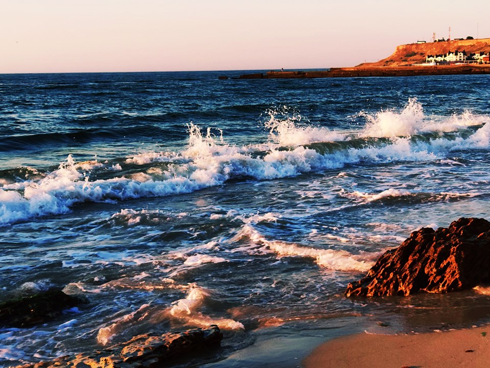 Санаторий "Россия", "Одесса", Аркадия, везде холодная вода, градусов 16-17. Достаточно чистая, волны. Солнце подпекает. Могли только окунуться и греться солнышке. Кто купается, молодцы!!