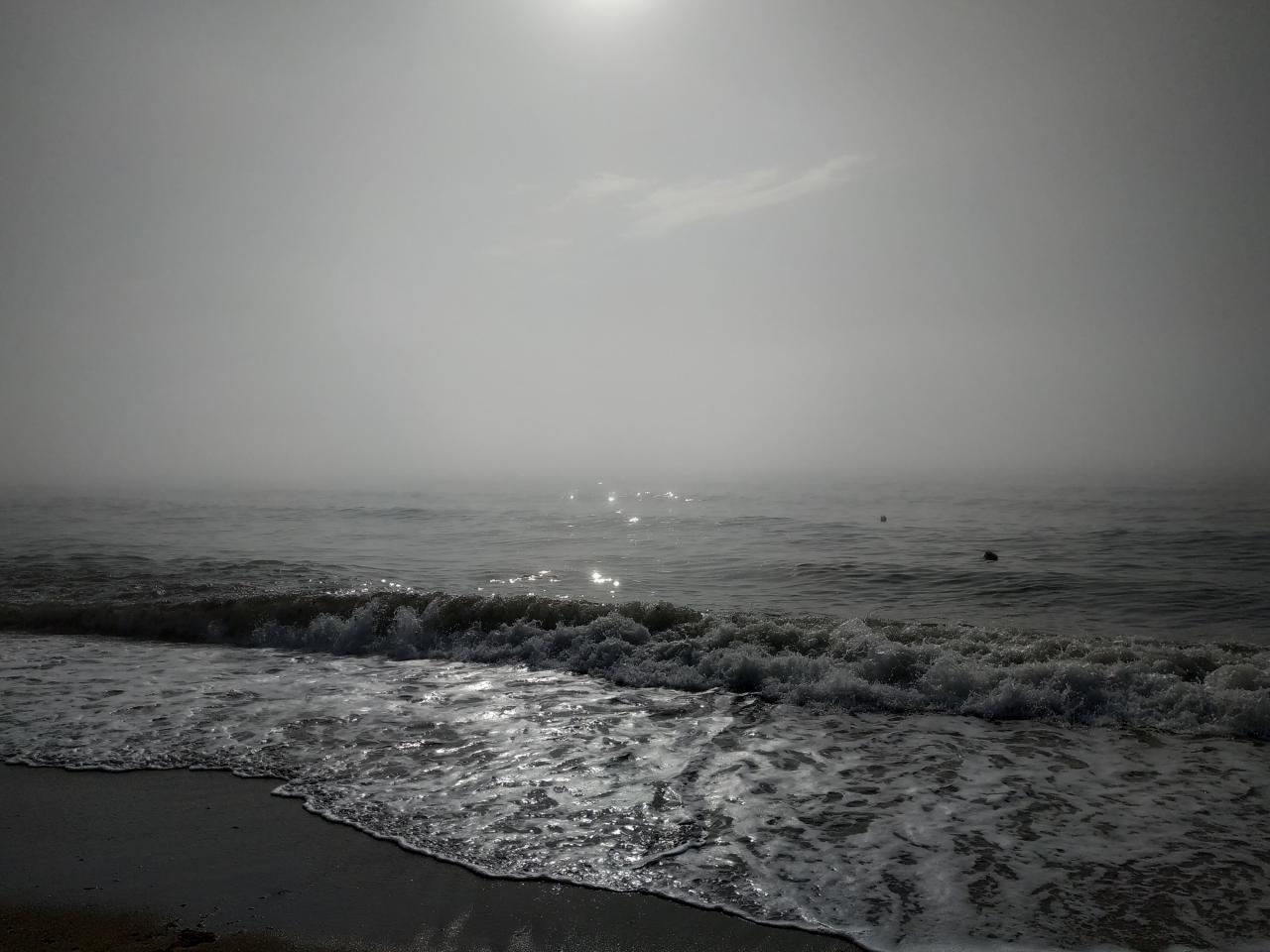 Как может быть вода 18, если такой туман над морем? Не выше 14-ти, увы.