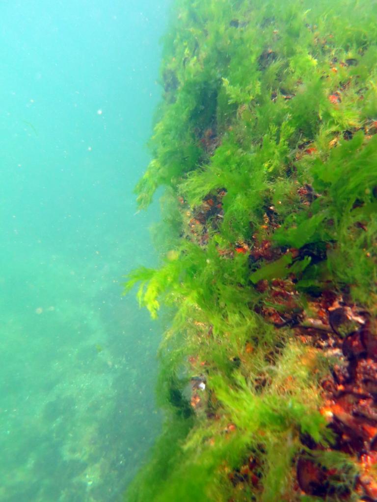 Вода на 14 ,15 БФ в основном чистая кроме тех участков где находятся пирсы с частично к ним прилегающей территорией ( наверное соотношение такое как 75 % чистой и 25 % где наблюдаются водоросли возле берега ) .