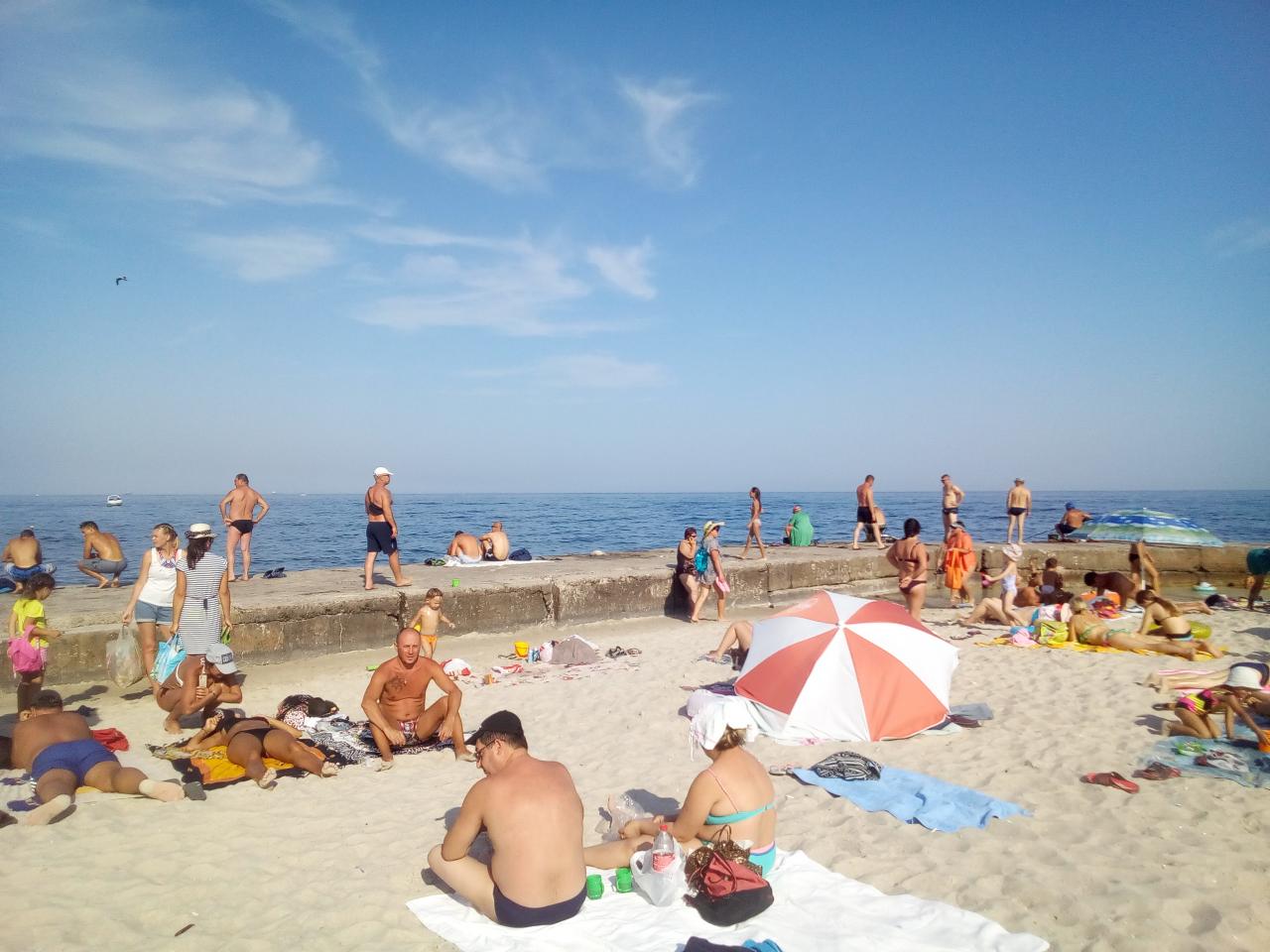 14 ст. Фонтана. На гешке волны небольшие, вода теплая, народу уйма, корнеротов нет вообще, немного водорослей.