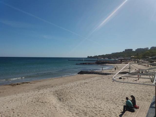 Прогулялась от 411 батареи до Аркадии. На пляжах, защищённых от ветра, народ активно плавал к волнорезу, на остальных предпочитал не рисковать. Температуры воды - 16-17 градусов, солнце яркое и жгучее, но ветер снижал градус накала. В принципе, возьми я купальник, окунулась бы. Например, на 8 станции были очень приятные условия для этого.