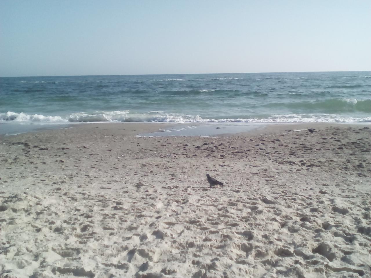 Красивые волны и ветер. Люди гуляют. Много чаек, которые уже хватают хлеб. Это на 16 ст