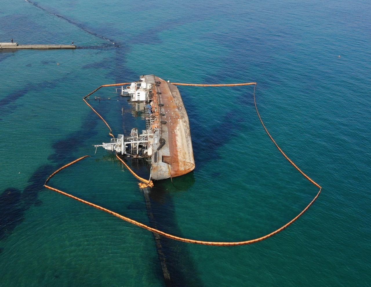 ну, да. Видно что бункеровщиком от удара и волнорез повело, это уж точно никто фиксить не будет.