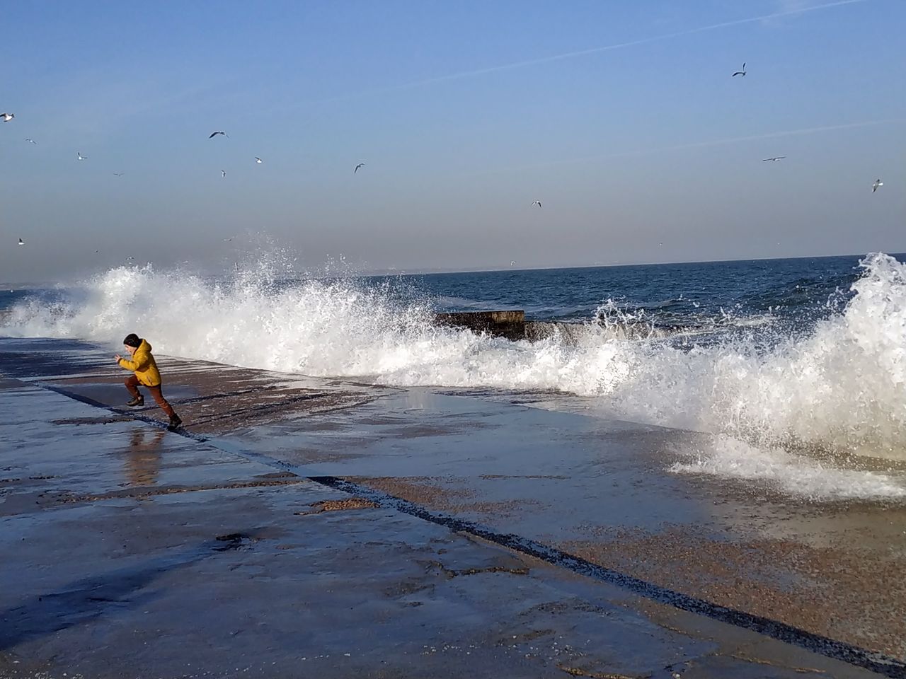Говорят был шторм, но я его не видела днем. Людей не было и видно, что пляжи заливало. Резкий ветер сверху , а внизу только песок в лицо