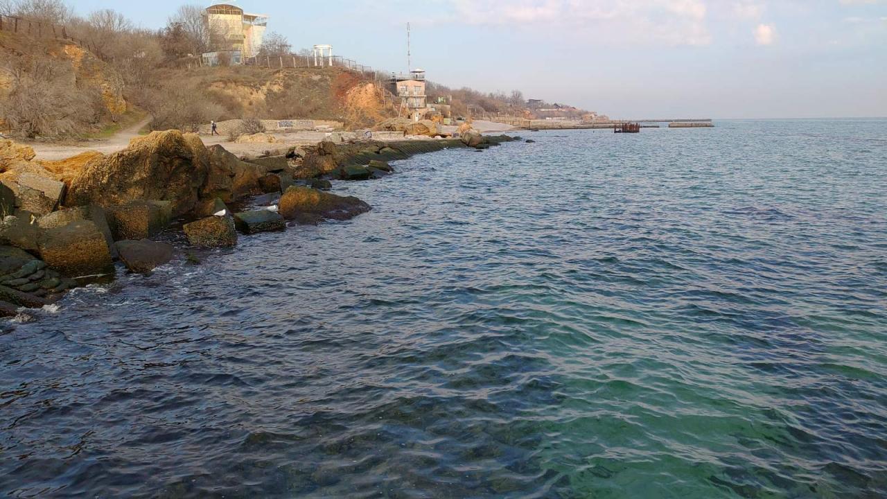 Сегодня 9.30. Прохладно, была лёгкая дымка. Вода прозрачная. Санаторий Россия и вид на скалодром.