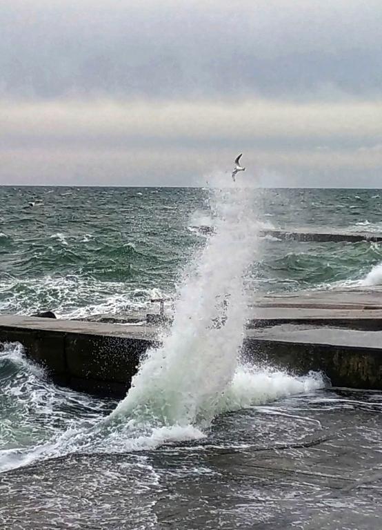 Ланжерон. 8.00 волны, солнце, ветерок и холодно. 4 группы жизнерадостных купающихся наблюдал.