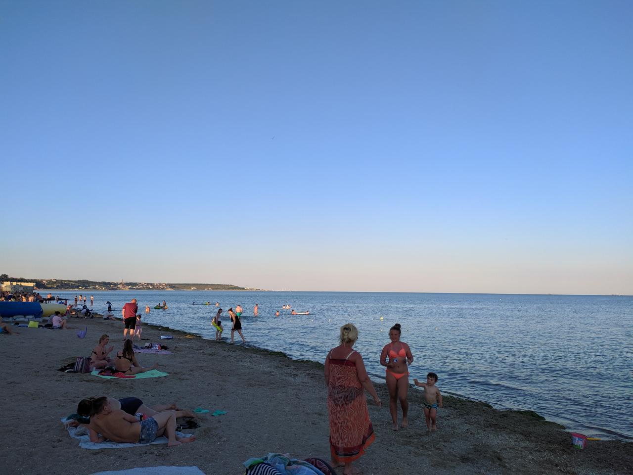 Само по себе тёплое, и в районе купательных лестниц спусков к воде оно было чистым.