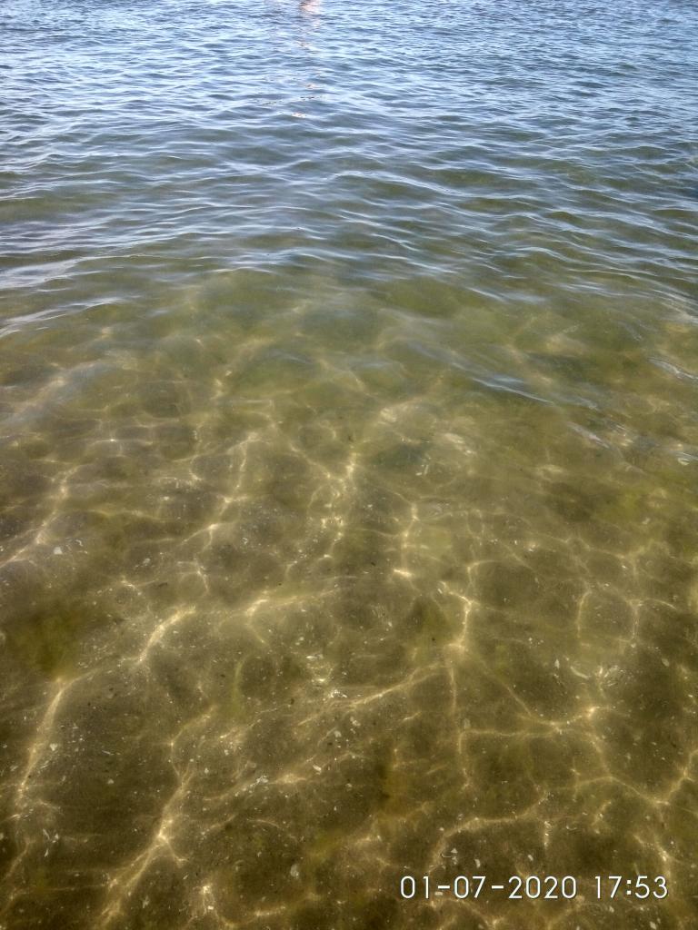 Водоросли прибило к берегу, "борщ" превратился в "паштет". Зато переступив пару шагов этот паштет попадаем в чистую воду.