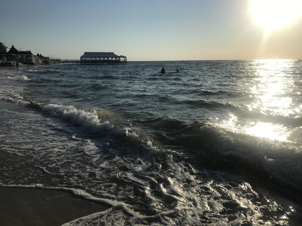 13-я фонтана , Ривьера , ветерок совсем небольшой, море волнуется, водичка 20 градусов очень комфортная, чистая. Людей мало.