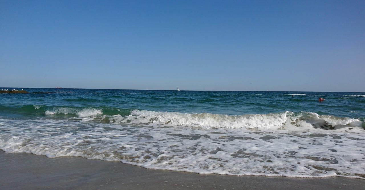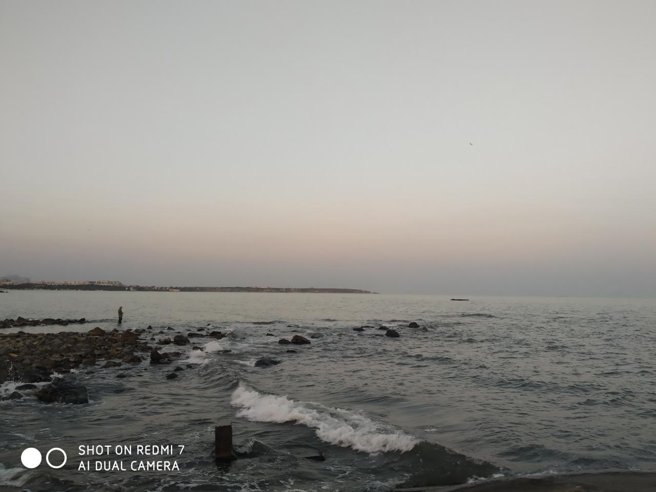 Волночки, лёгкий ветер, ласковое солнце, вода 19-20 градусов, есть участки с большим количеством водорослей, есть относительно чистые. В море плещется несколько человек. Очень сильно и приятно пахнет морем, чайки и прочие пернатые просят еду.