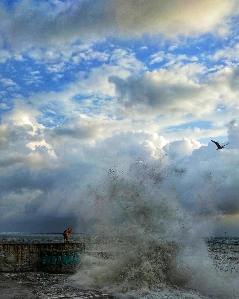 Три часа снимала пока весь буреган не прошел и ветер не сменился.