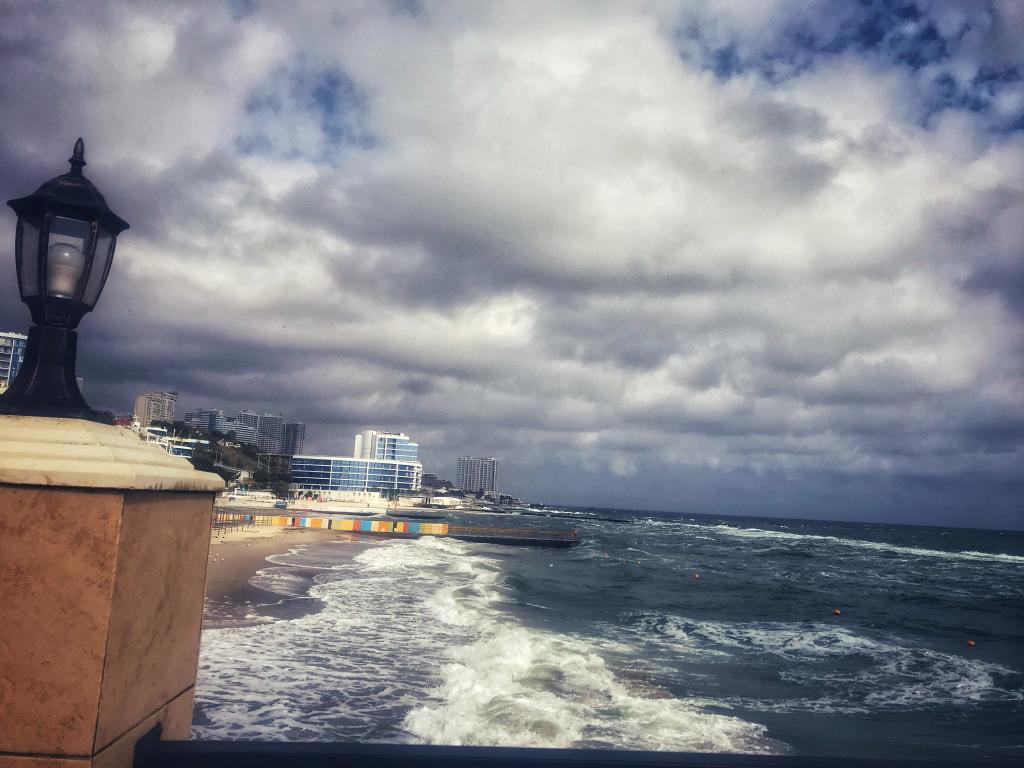 Похмуро, вітер не стихає, море не заспокоюється. Але, повітря 22, вода 20! кламутна, звісно.