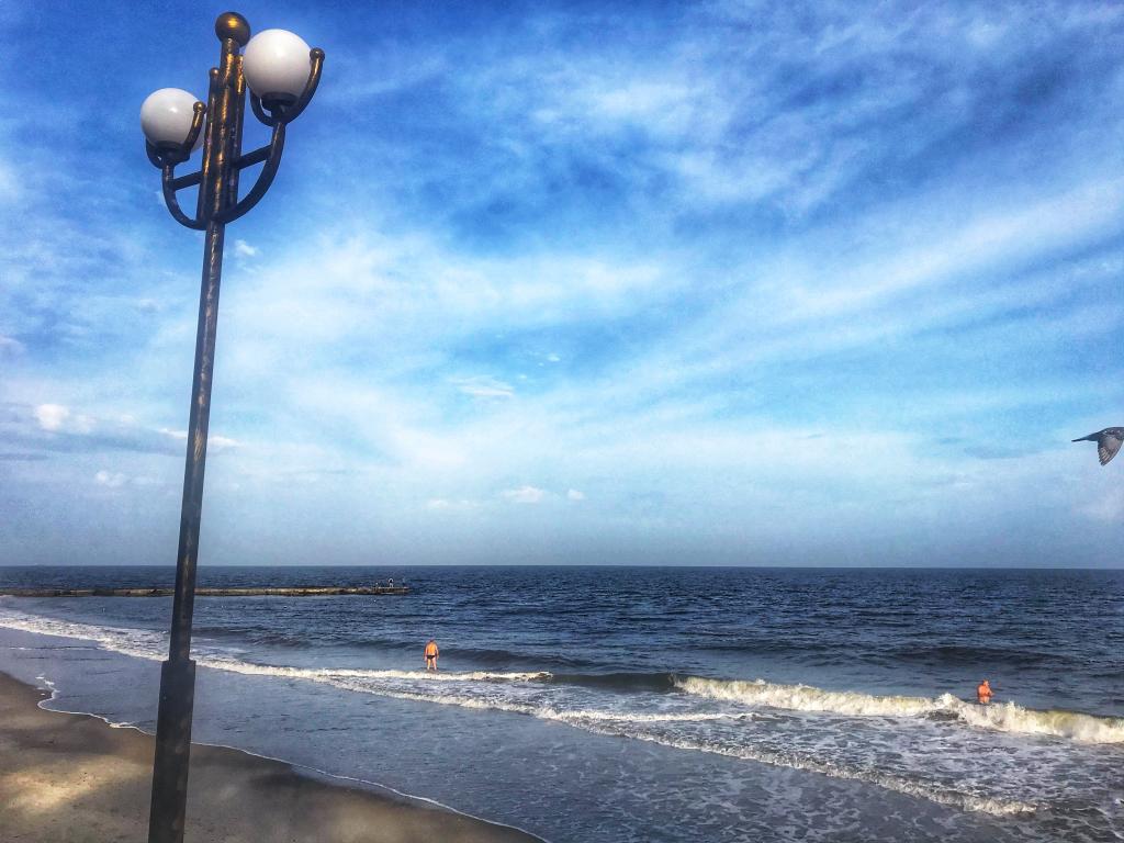 Похмуро, потужний південний вітер, море розгулялося, начебто, ще трохи більше, але й повітря й вода 20 градусів.