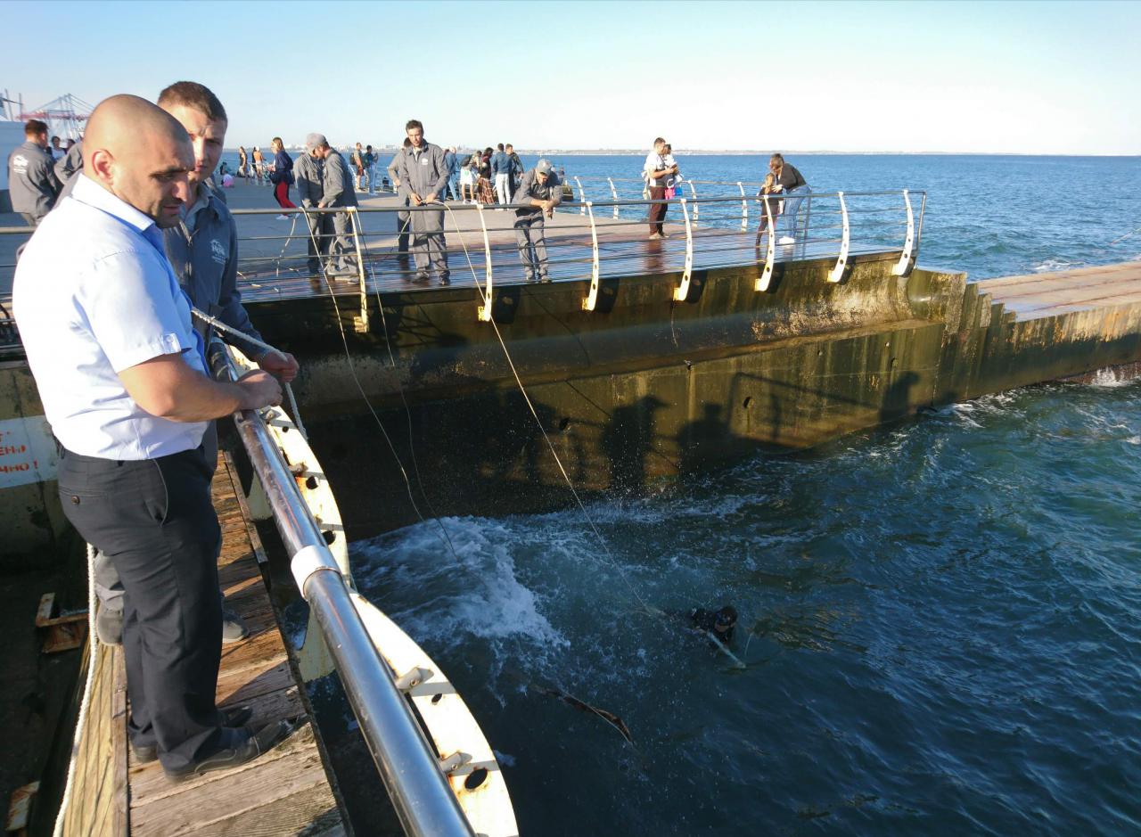 Ну и за операцией по подъему лестницы понаблюдала: тянем-потянем, вытянуть не можем, а парень, почти Ихтиандр, артистично уворачивается от волн и этой самой металлической лестницы. Надеюсь, все-таки удалось запланированное.