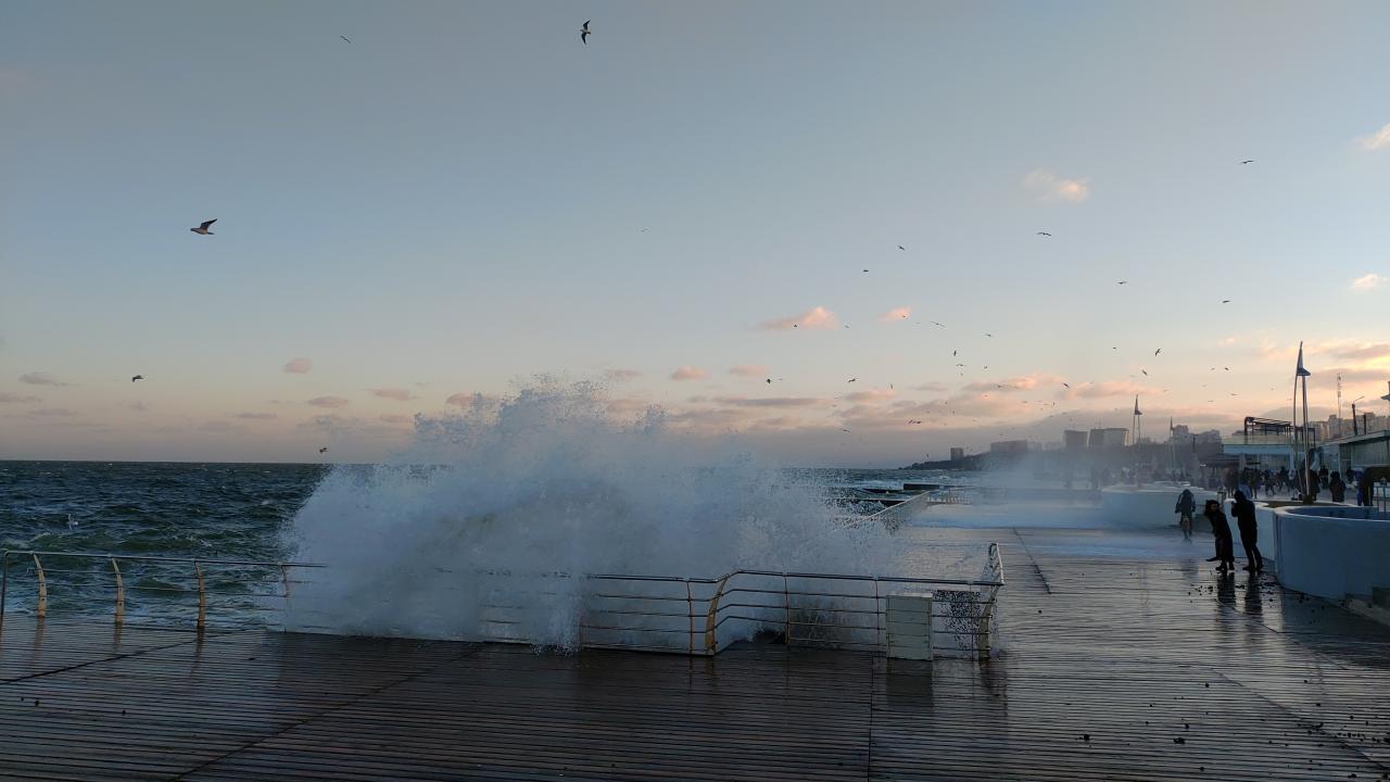 Сегодня. Дельфинарий 10:00. Шторм, ветер, прохладно и очень красиво