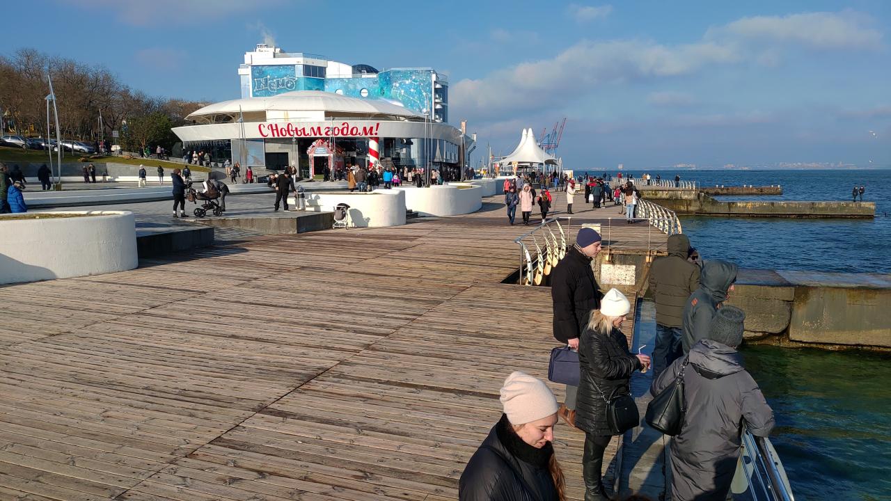 Сегодня. Дельфинарий 13:00. Штиль, прозрачная вода, ветер, холодно. Много людей
