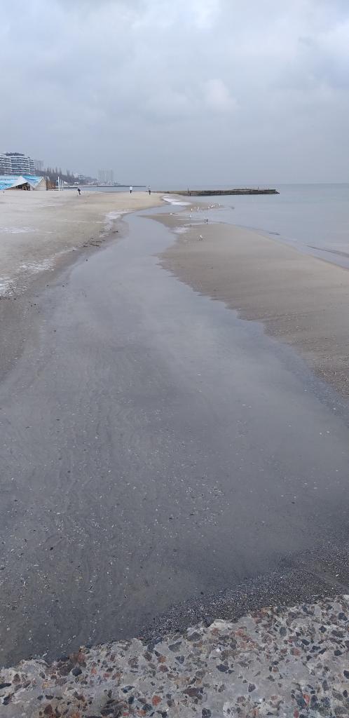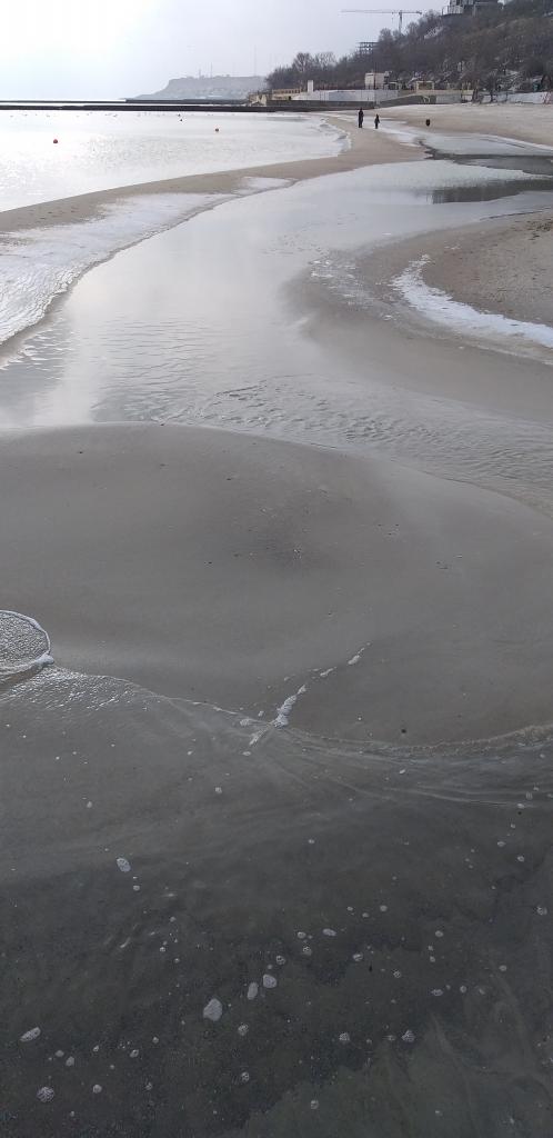Сегодня моречко было спокойное, умиротворенное после штормов. Немного солнышка, никакого ветра и масса гуляющих. Видимо, после шторма, образовались косы вправо и влево от пирса. А глубина воды в торце пирса (последнее фото) не превышает см 20.