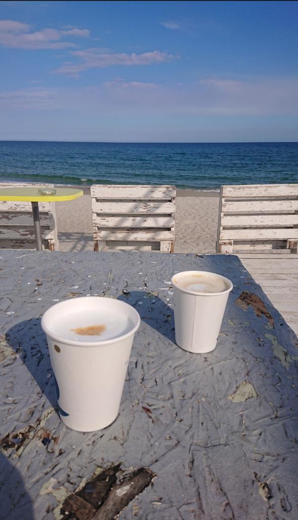 Если спускаться к Желтому камню по склонам, то удовольствия через край: деревья цветут и благоухают, птички поют, люди улыбаются. Непосредственно возле моря ветер был сильный и неприятный (в районе 17-20). Зато цвет моря ну очень красивый. Поэтому быстрый перекус плюшкой (сочником), творожную начинку из которой с удовольствием слопала мурка в положении, появившаяся неожиданно, а потом энергичная ходьба )