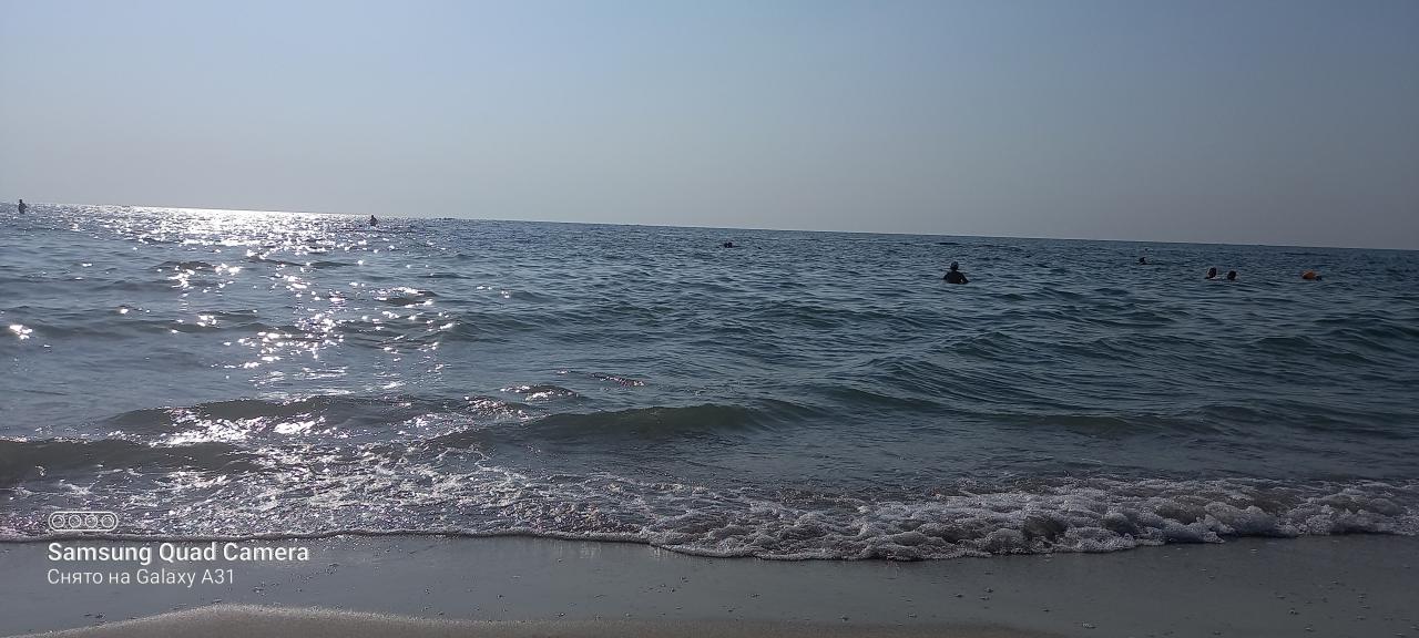 Санжейка- грибовка : вода ну прямо тёплая. Чтобы охладицца надо хорошенько отплыть от мелководья. Зелень в полосе прибоя, дальше норм. Народу.. Сказать шо много - ничего не сказать. "Как на водопой" (с)