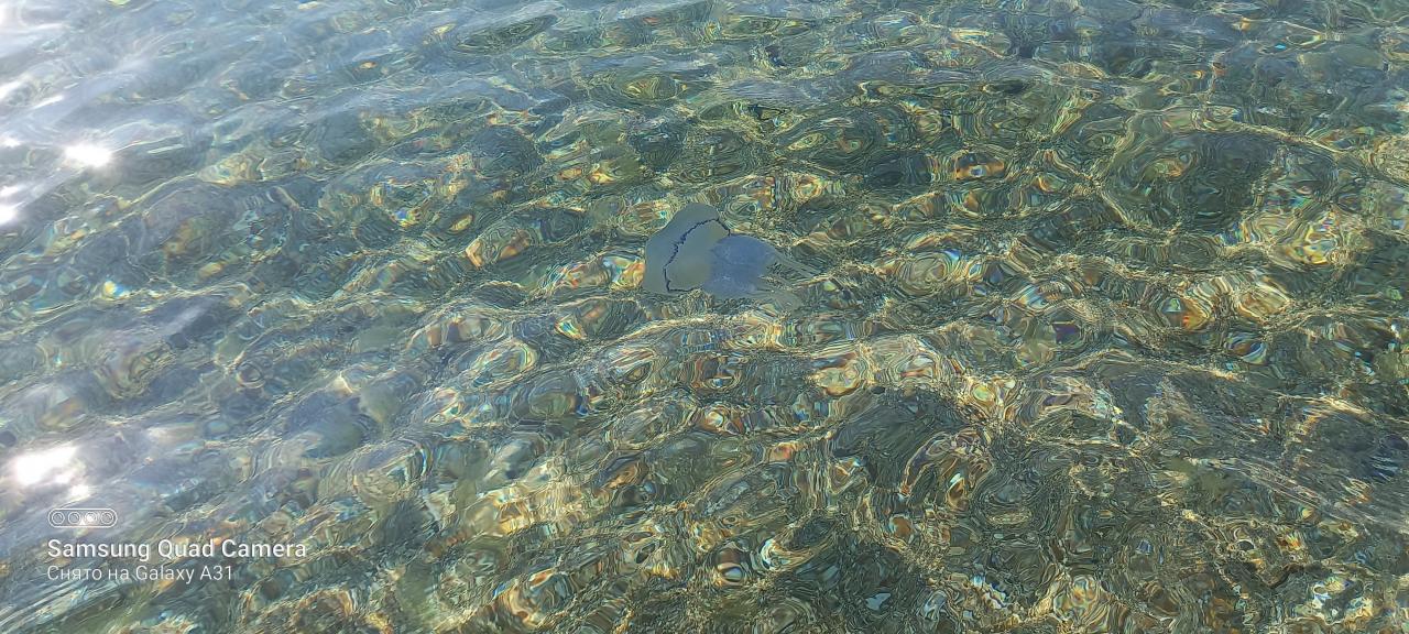 Вода прохладная, 19-20 гр., купающихся мало. Возле берега немного водорослей и медуз, дальше - чисто, волны совсем небольшие.