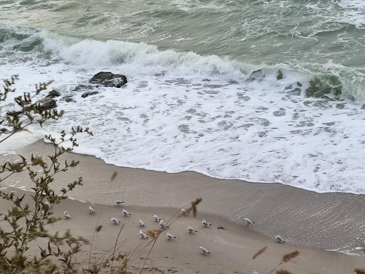 Кабельний, сьома ранку. Ясно, північний або північно-східний вітер не вщухає і не дає заспокоїтися морю. Вода непрозора. Повітря 6, вода 12 градусів