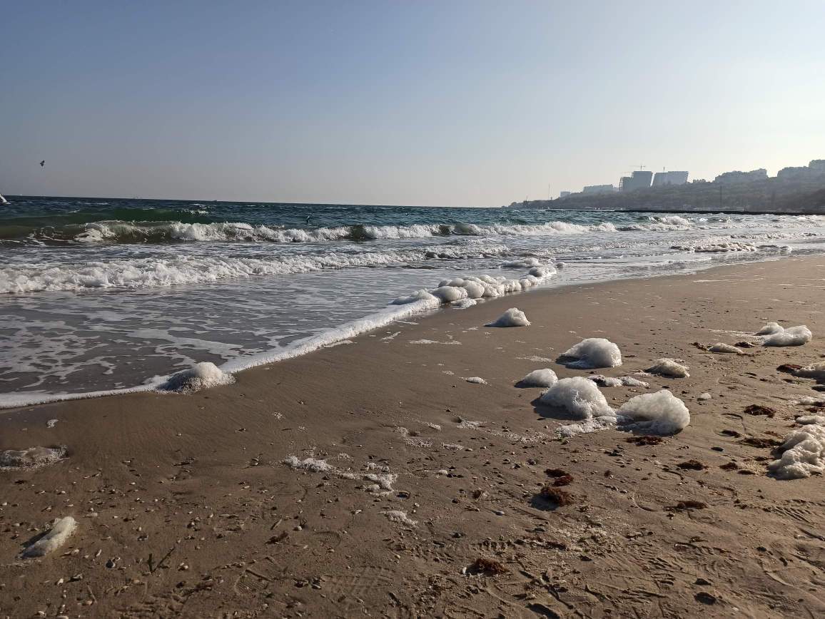 На кабельному о сьомій ранку похмуро, над морем чи то серпанок чи вже туман, вітру немає, море трохи неспокійне. Повітря 10, вода 11 градусів.
