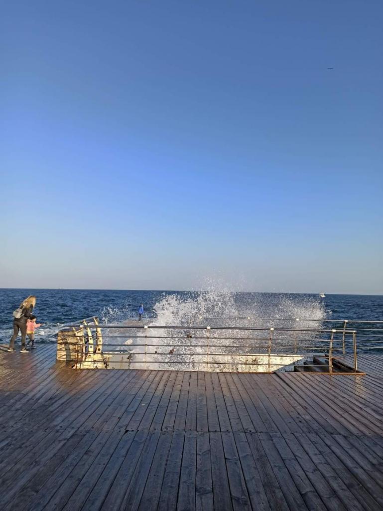Море сьогодні спокійне, але невеликі хвилі іноді зустрічаються, вода напівпрозора та солона.