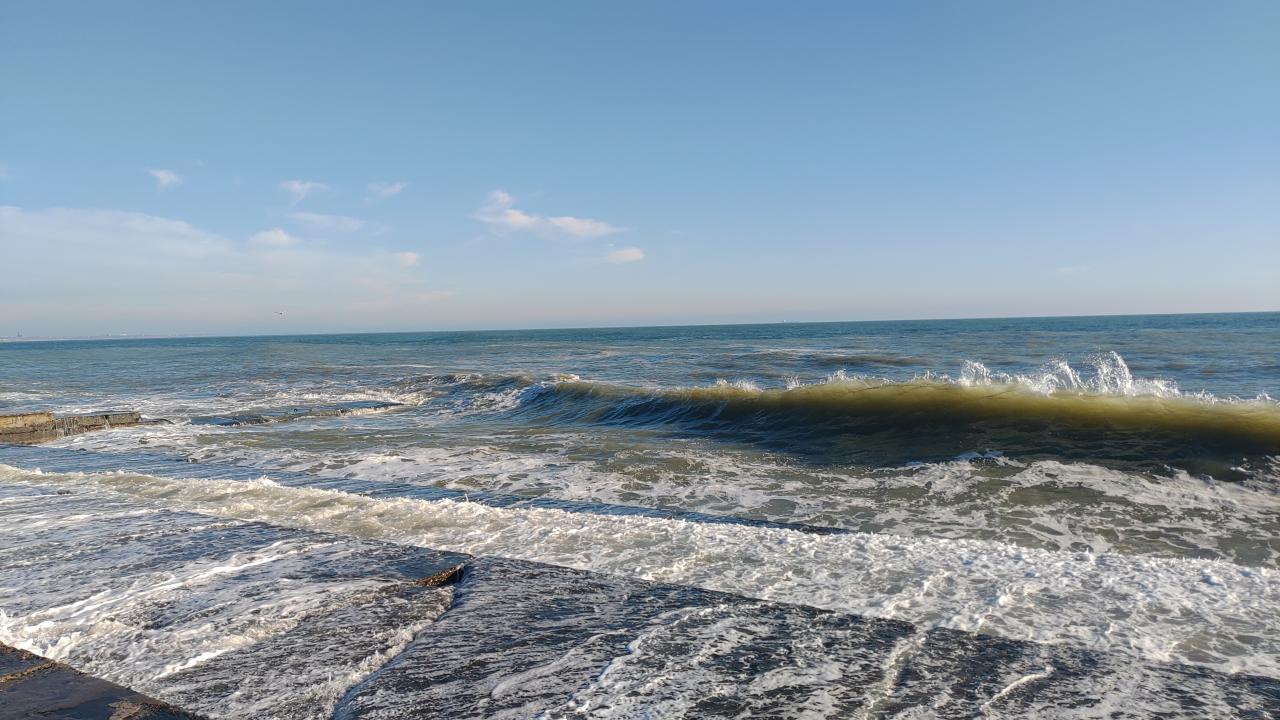 Сегодня волны полтора метра высотой, вода жёлтого цвета. Под 411-ой.