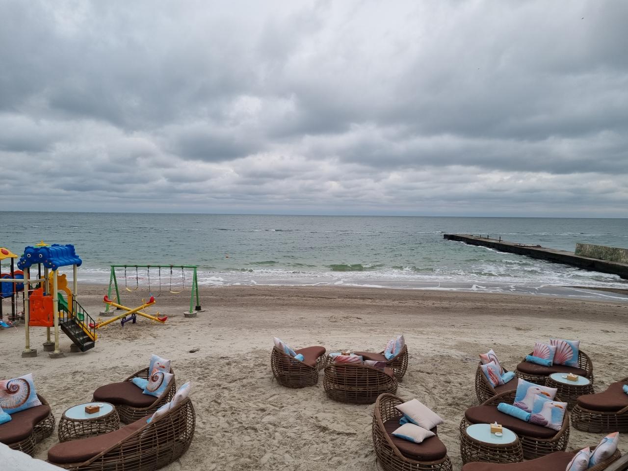 На морі сьогодні хвилі, іноді зовсім не маленькі, вода каламутна та солона.