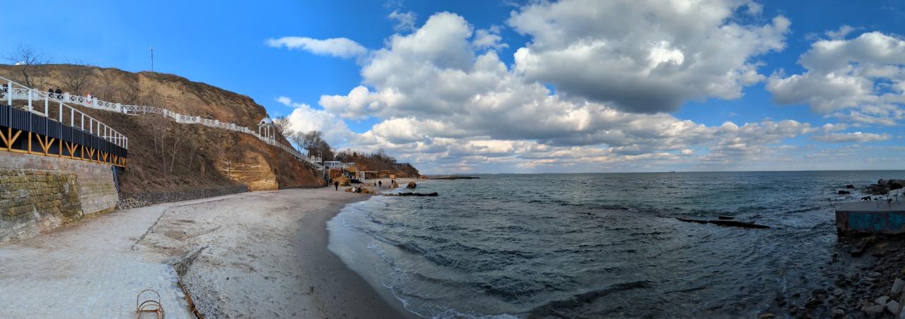 На кабельному зранку похмуро, вітру майже немає, але море ще не зовсім заспокоїлося та ліниво хлюпає невеличкими хвилями. Повітря 7, вода 3 градуси.