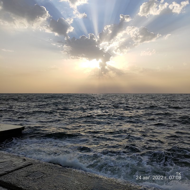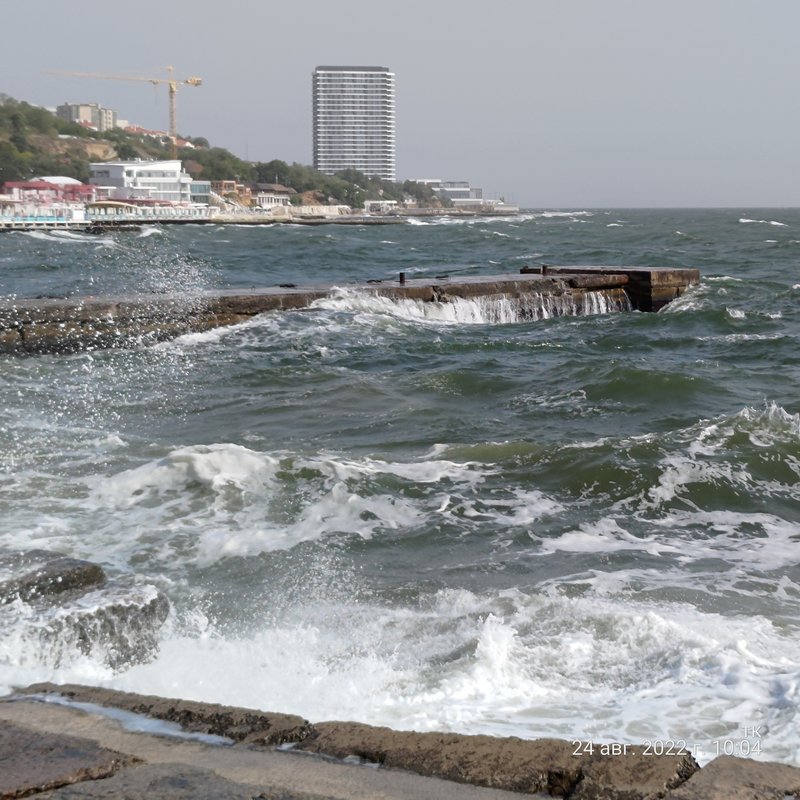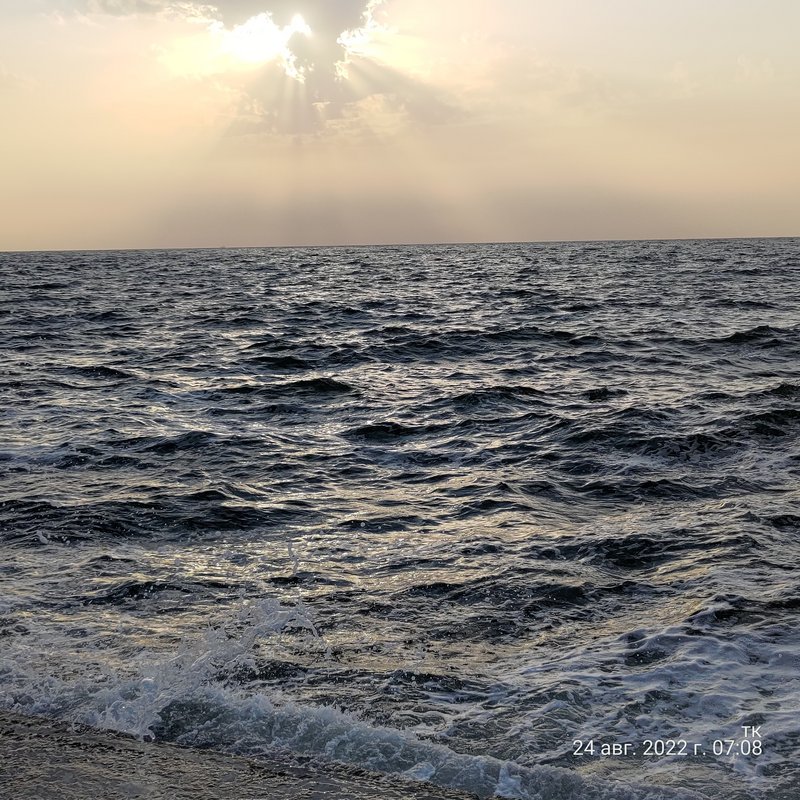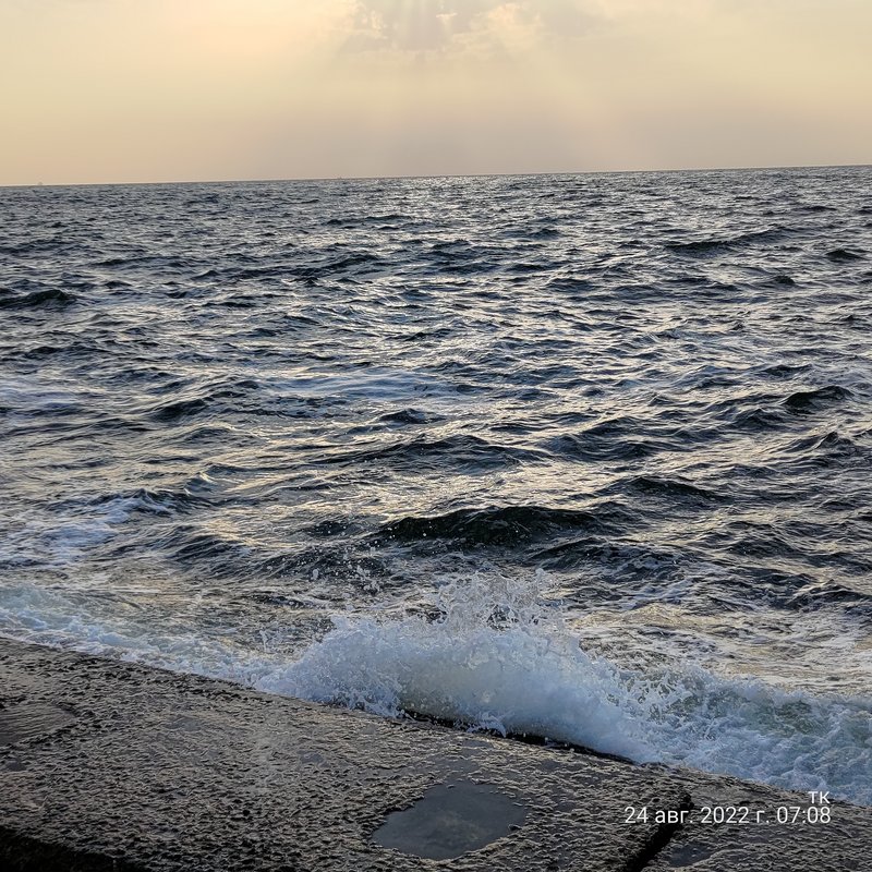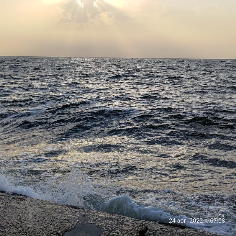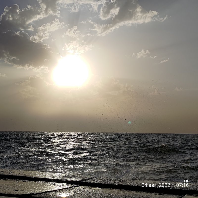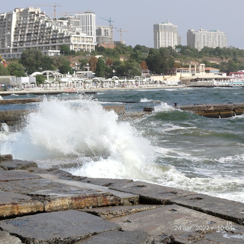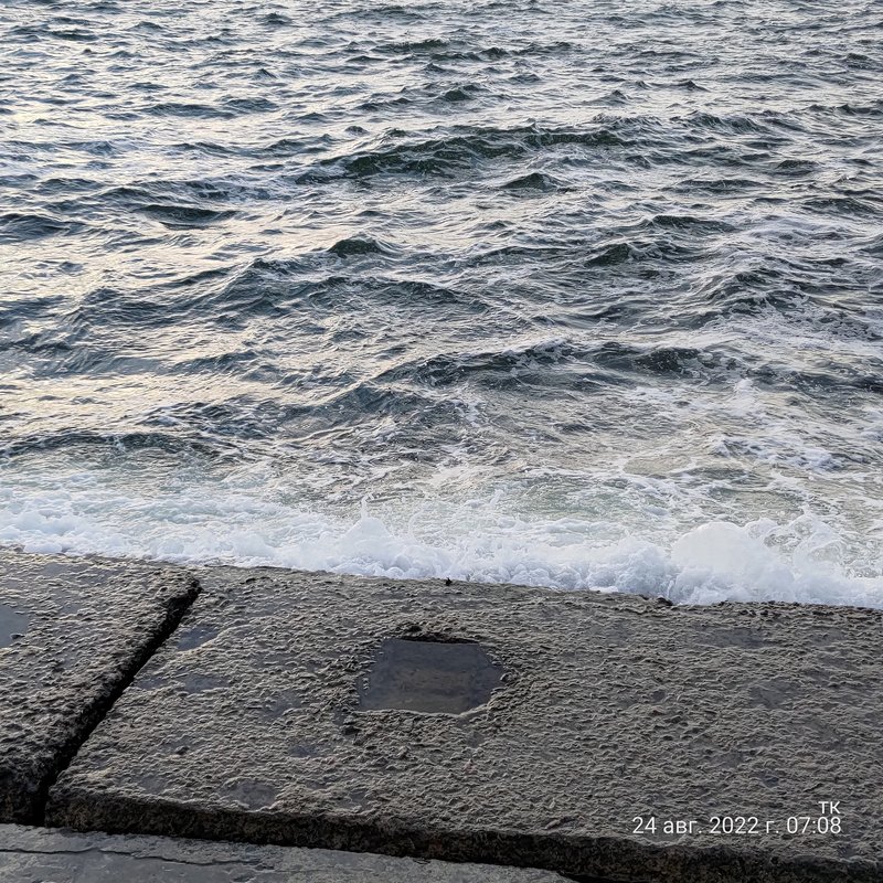 Сегодня кстати восточный ветер, как раз может и пару мин принести... Вода теплющая, мутная, водоросли, корнеротов нет, на море всё равно хорошо. Полиция пришла в 9
