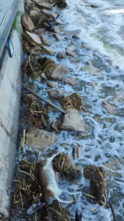 Після підриву Каховської ГЕС загинуло багато різних тварин, течією їх віднесло до Чорного моря. Сьогодні до берегів Одеської області винесло тіло загиблої оленихи»
