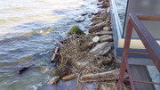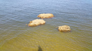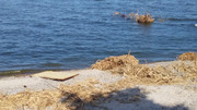 Зелені кущі у воді вже не зелені, багато посохло і бовтається соломою. Шторми пройшли, сміття позбивало купками на березі.