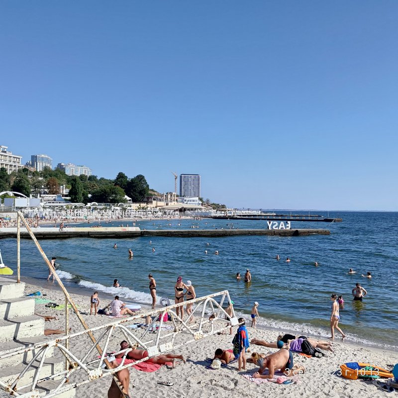11-я станция, автомобилей больше, чем людей, вода мутная, шо капец и очень теплая, водорослей нема, вротмненогов мало (видать шторм их ушатал немного). Небольшие волны.