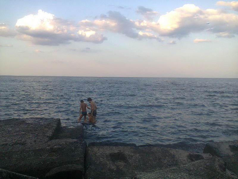 Вчера после обеда были на Ланжероне. Людей немало, но приткнулись. Вода освежающая. Но можно долго плавать. Сегодня были там же, но ближе к Отраде. Волны и ветра не было часов до 15. Чистая вода, теплее, чем вчера. Гуляли с сыном до яхтклуба какого-то. На Отраде и дальше людей совсем немного. Море мельче, теплее и 6аверное ещё чище.
