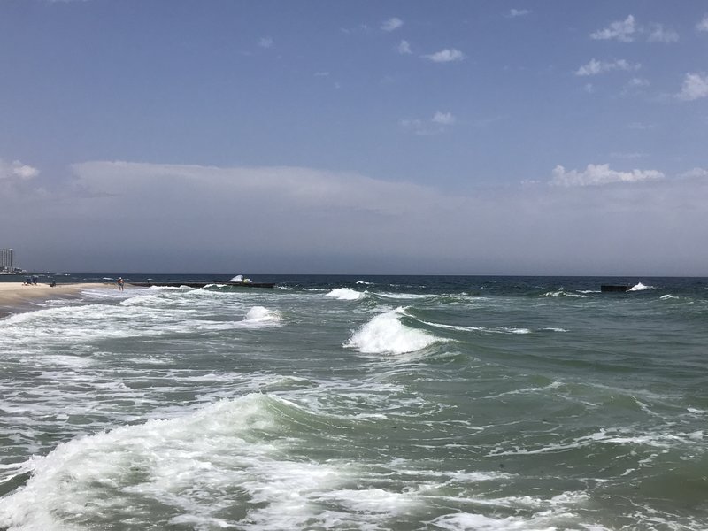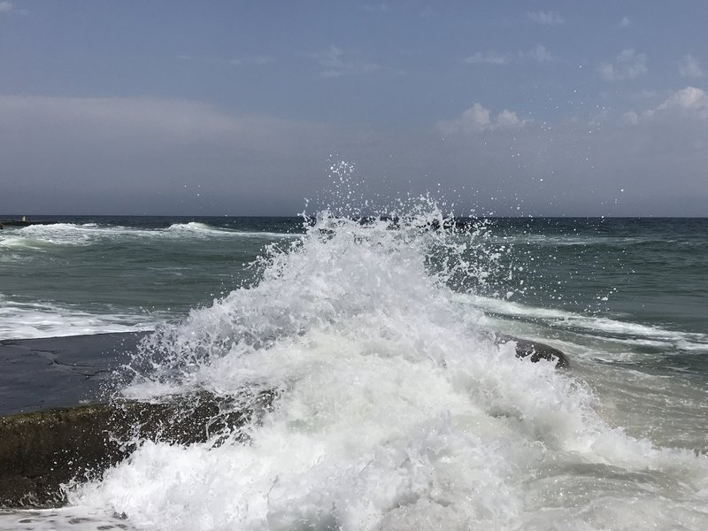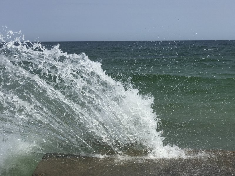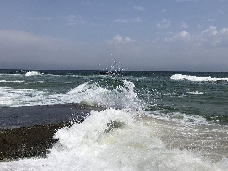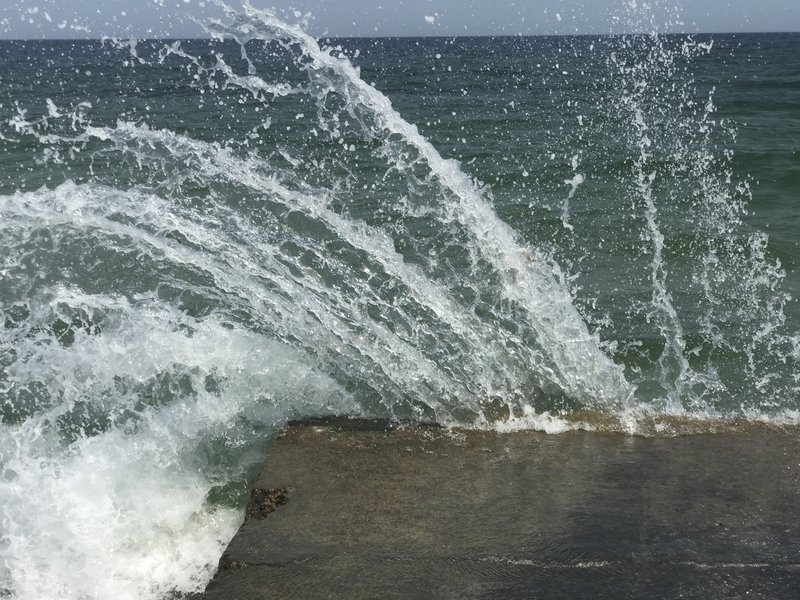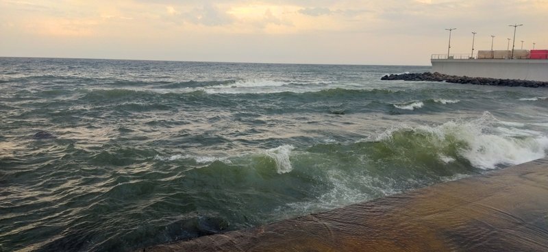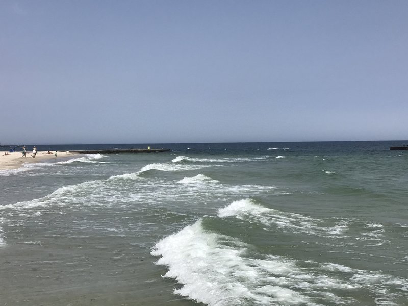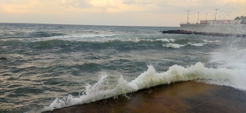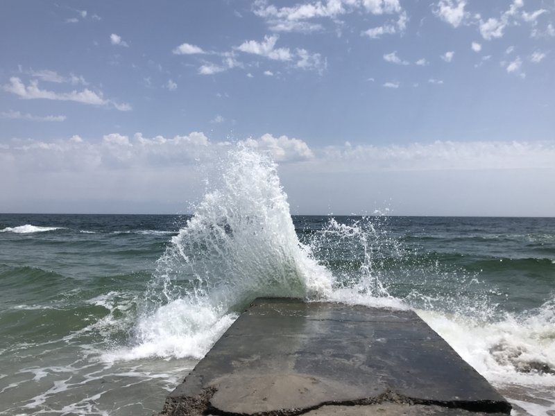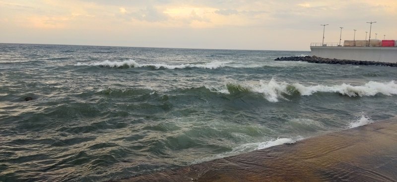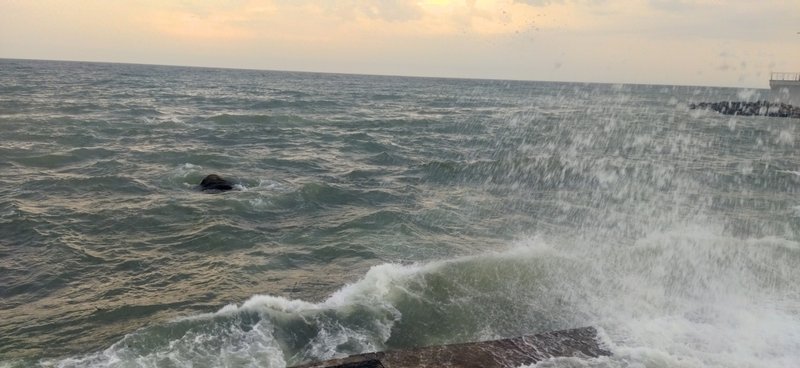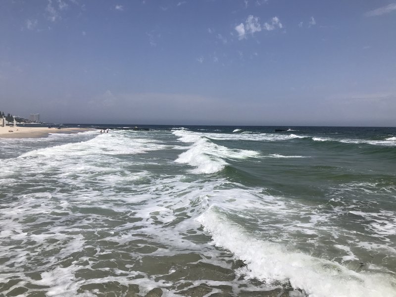 вода с бульбашками-проводишь по воде рукой чтобы разгрести как то эти бульбашки,а они как пена-их становится еще больше...чего то катанули уже.Позже налетел легкий бриз и волны всё прибили к пирсу.Температура воды не изменилась-23С"(с)