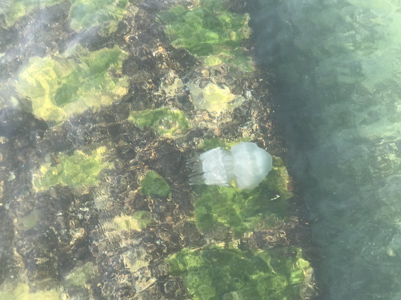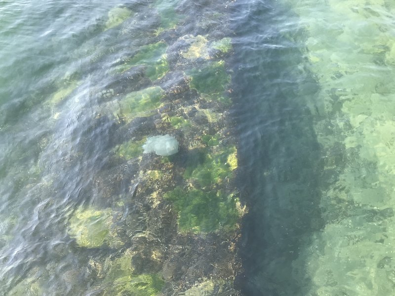 Утром на 16 Фонтана вода была шикарная, без водорослей, видимость отличная, рыбки, крабики, медузы. С 8 до 10 людей не так много.