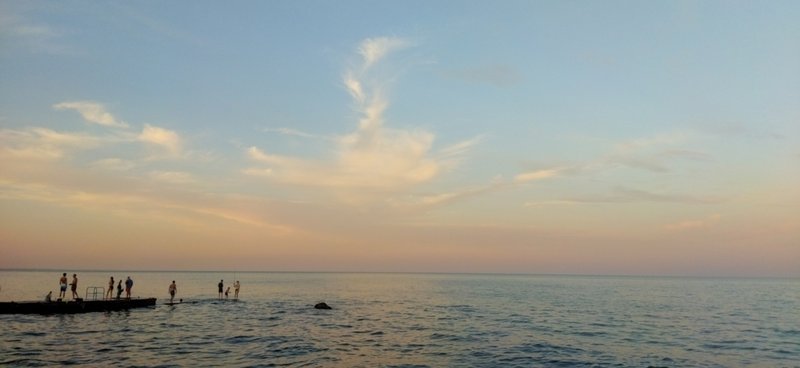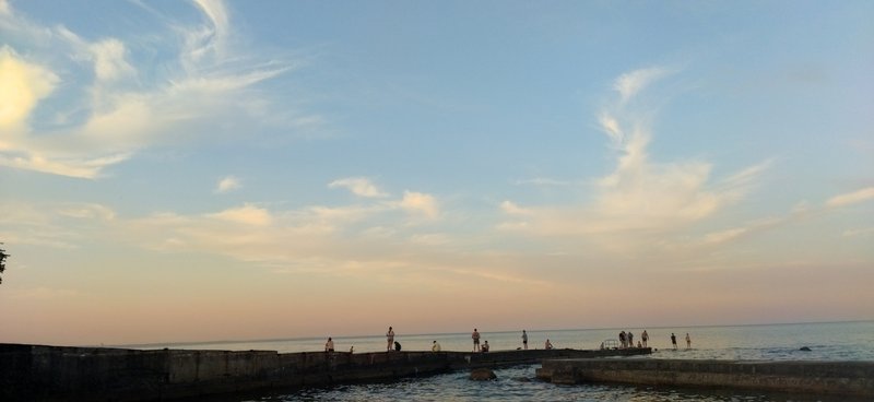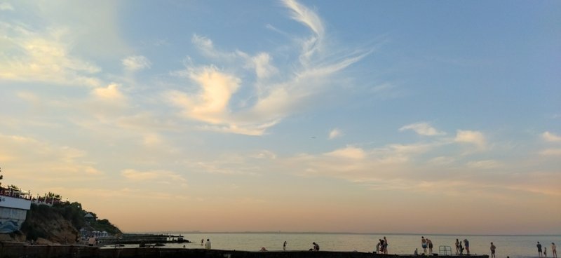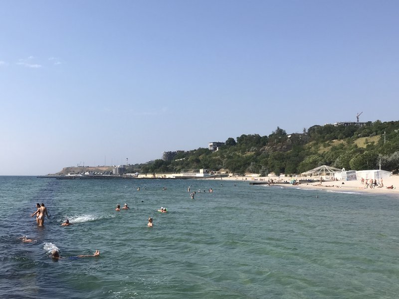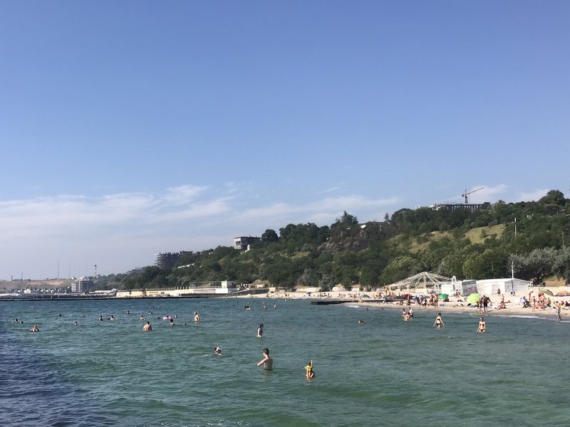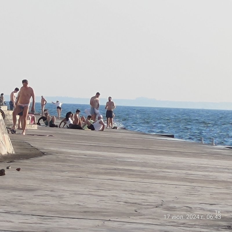 Не знаю как вы, но утром после купания было свежо. Прошлись от 10 до 16. Все пляжи открыты, люди есть. На 14 после штормов до волнореза пешком дойти можно. На Кораблике поставили решетку при проходе на волнорез. На каких основаниях?!Там где каша из водорослей там теплее, но быть русалкой не очень хочется. Очень много приезжих. Люди хотят расслабиться и загорать