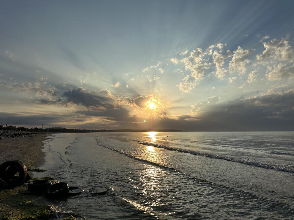 вода плавательная!,когда выходит солнце-прозрачная,пригнало немного водорослей и корнеротов