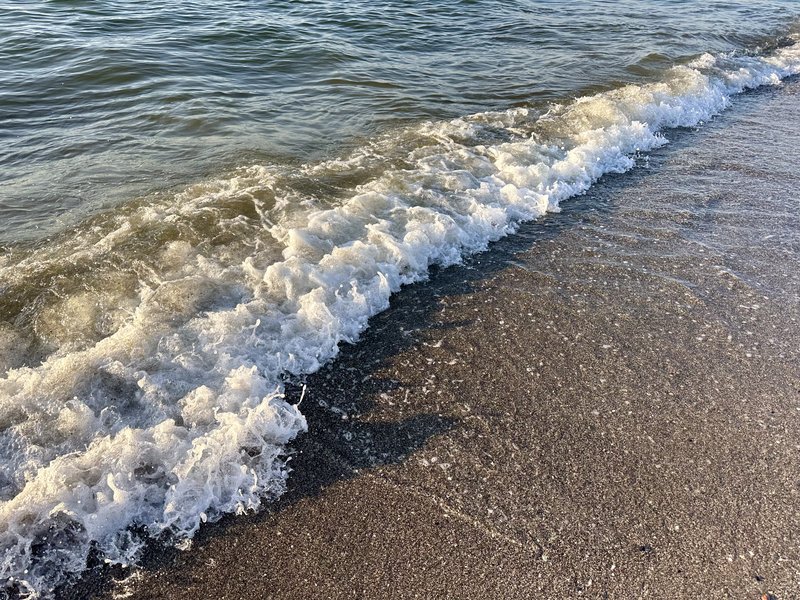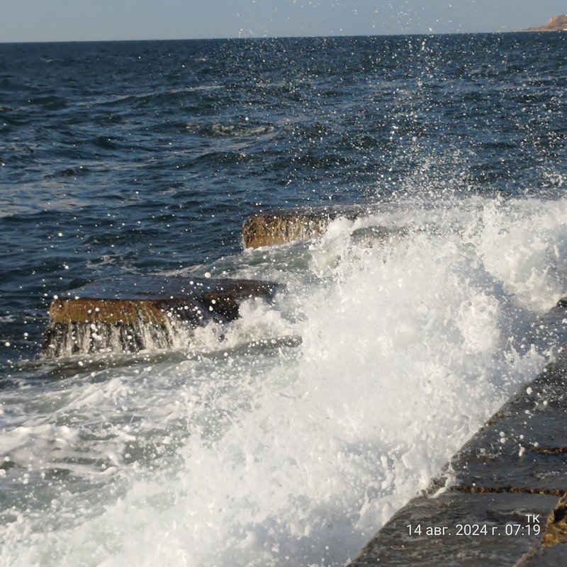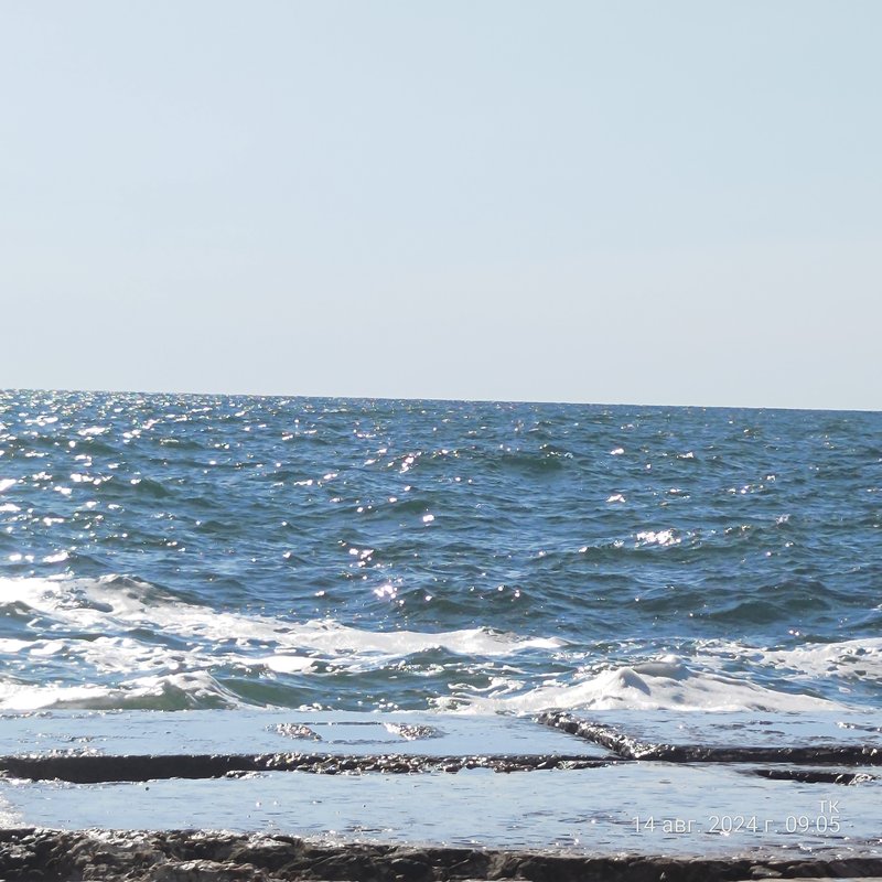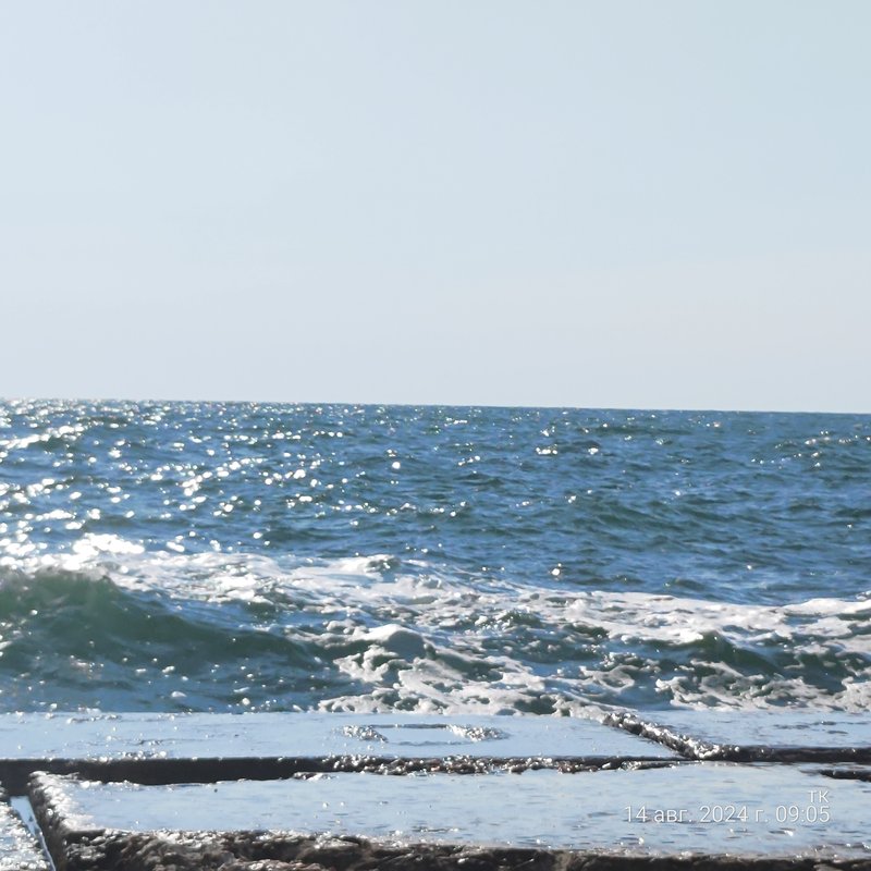 Вода шикарная , море слегка штормит , ветерок освежает .