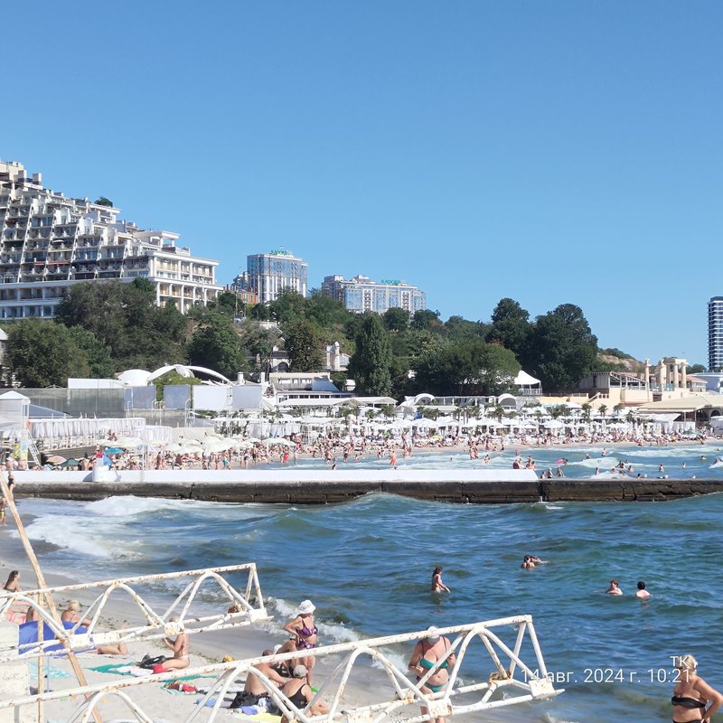 Добрий ранок! Кабельный, вода тёплая , волны, но очень грязная, волны несут водоросли и даже на глубине неприятно плавать . А так день чудесный, погода чудесная, шум волны